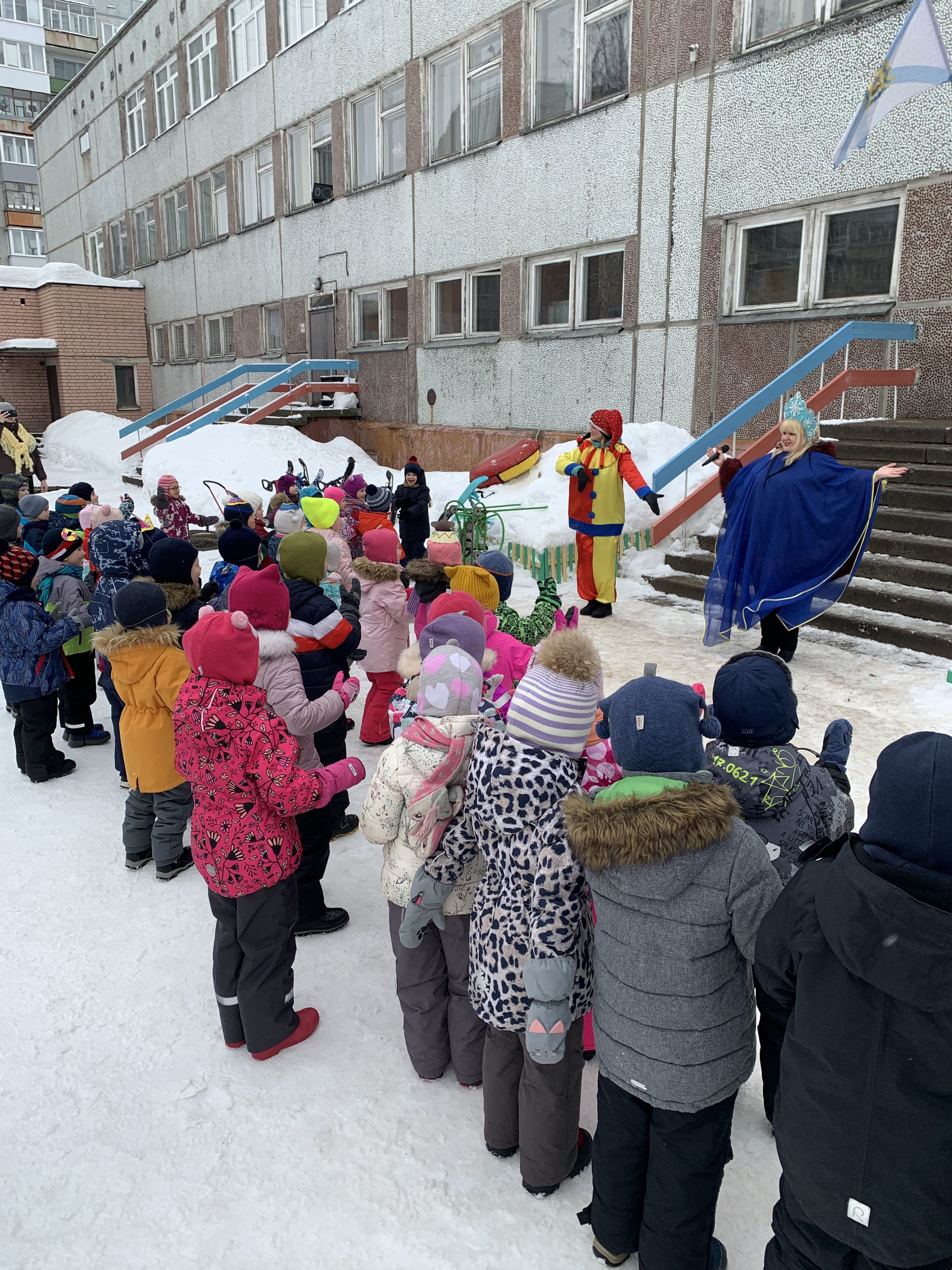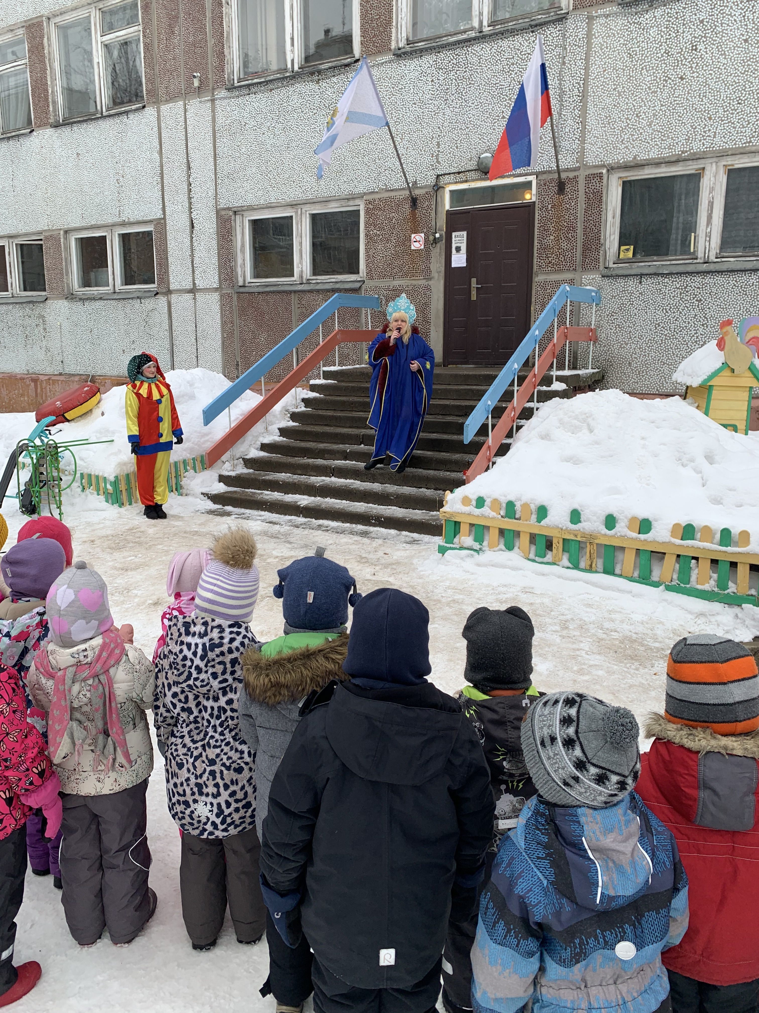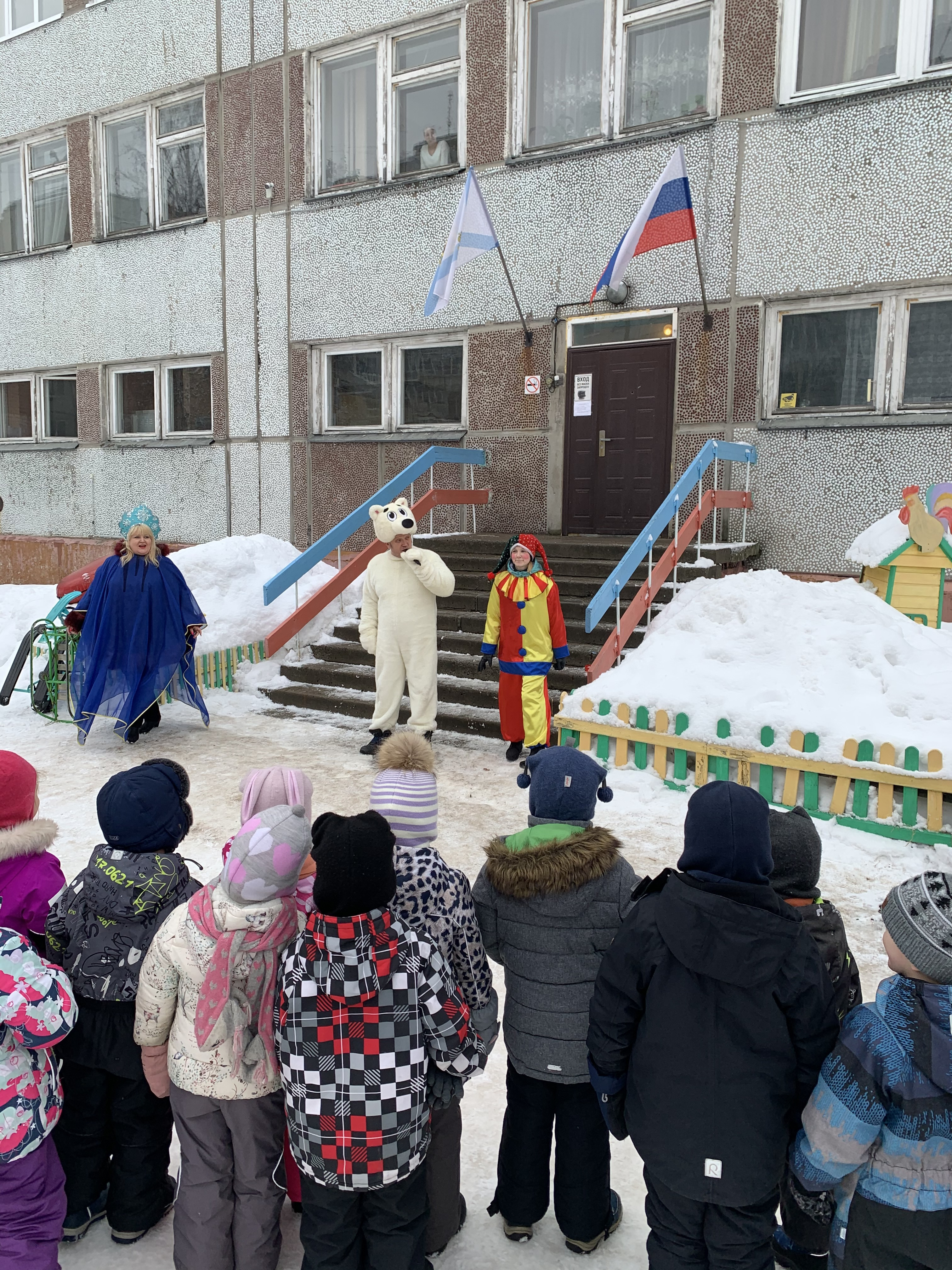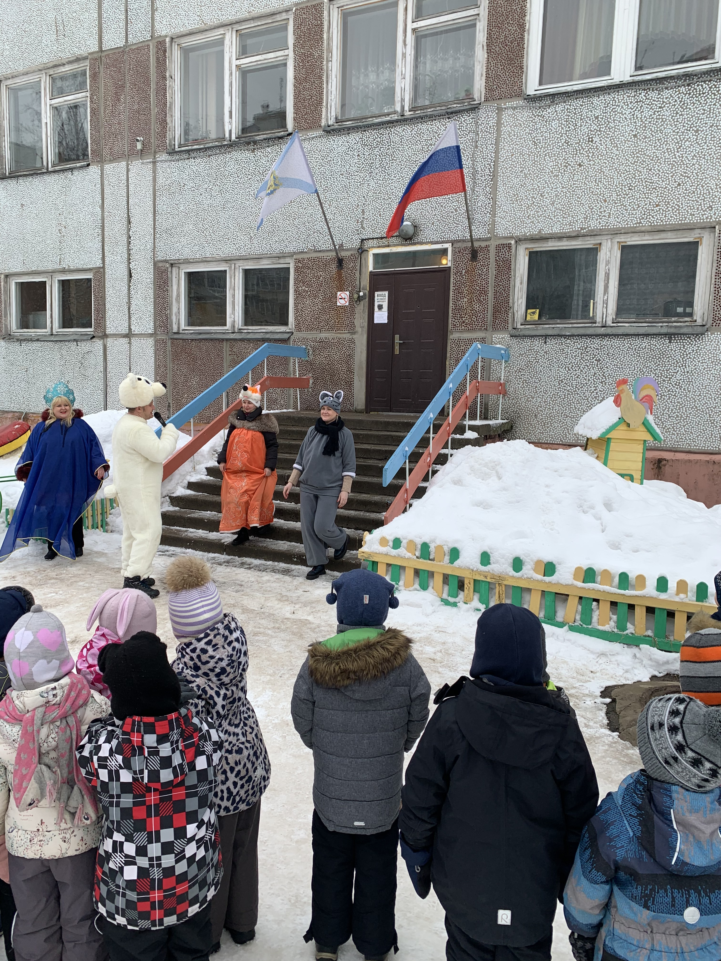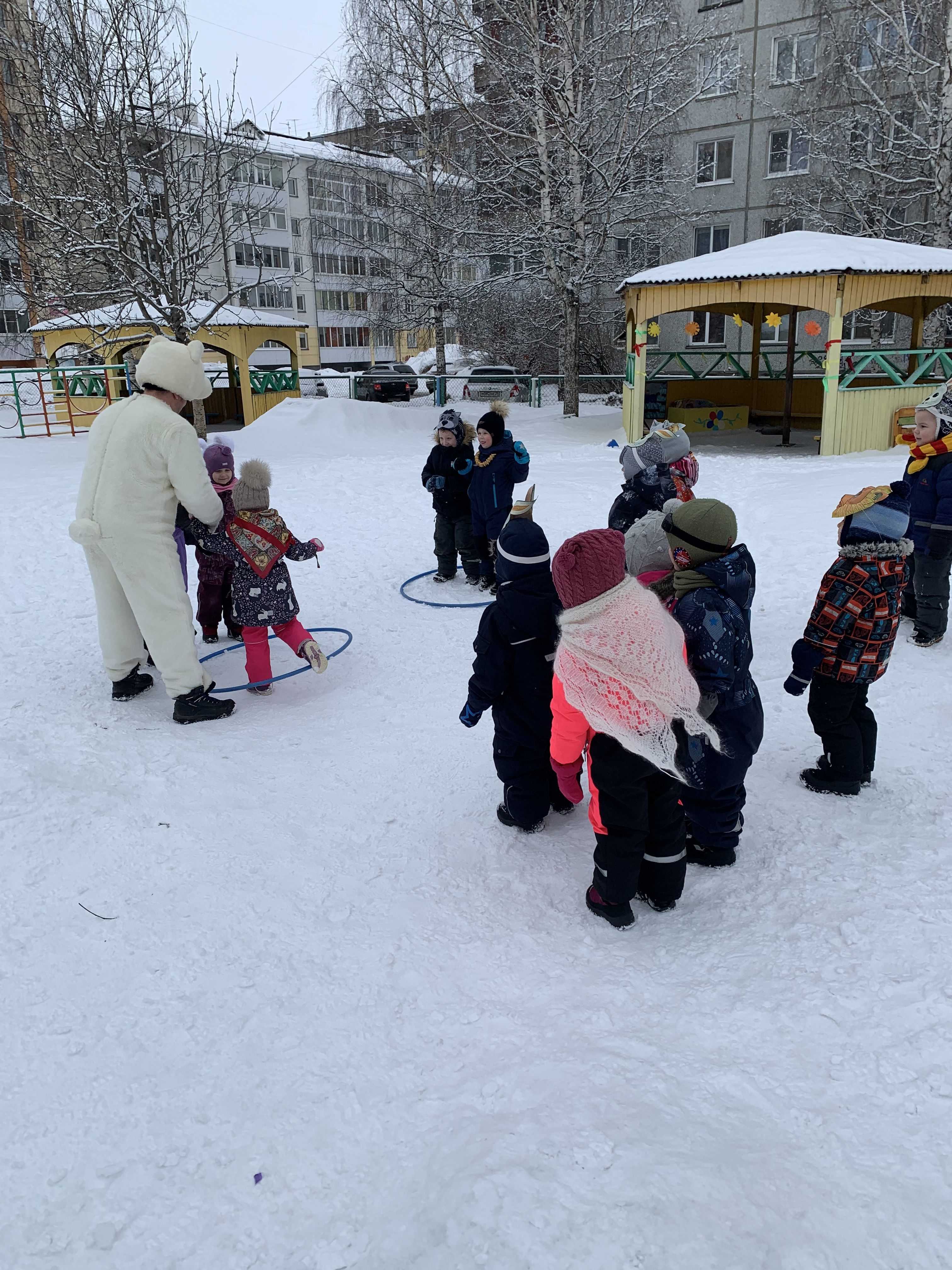 Создать атмосферу поистине народного гуляния помогли несложные аксессуары, от чего они пришли в неописуемый восторг. Программа развлечения получилась очень веселой. К ребятам на Масленицу заглянули красавица Зима, скоморох, наш северный белый медведь, лесные жители: лиса и мышка и конечно же Весна.