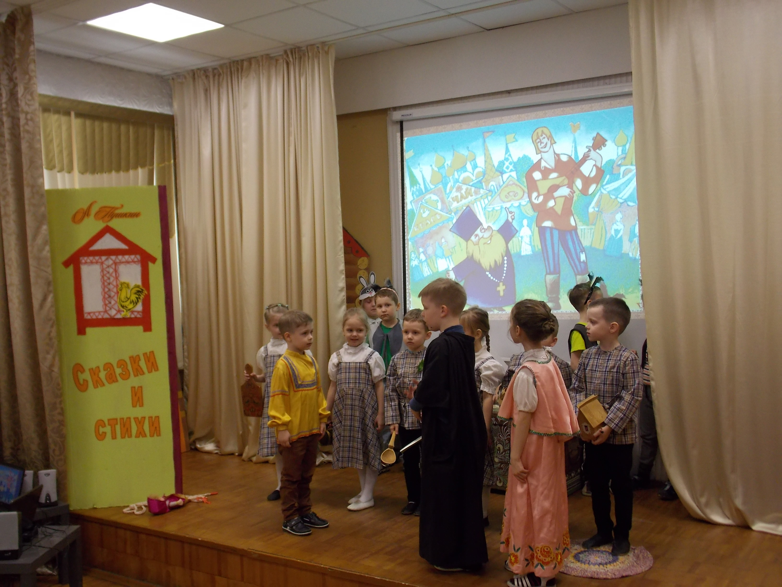 8 апреля 2019г. в библиотеке прошел конкурс театрализованных миниатюр “Праздник Пушкинской сказки”, воспитанники МБДОУ № 167 показали сценку из сказки “О попе и работнике его Болде” Все участники получили дипломы и ценные подарки